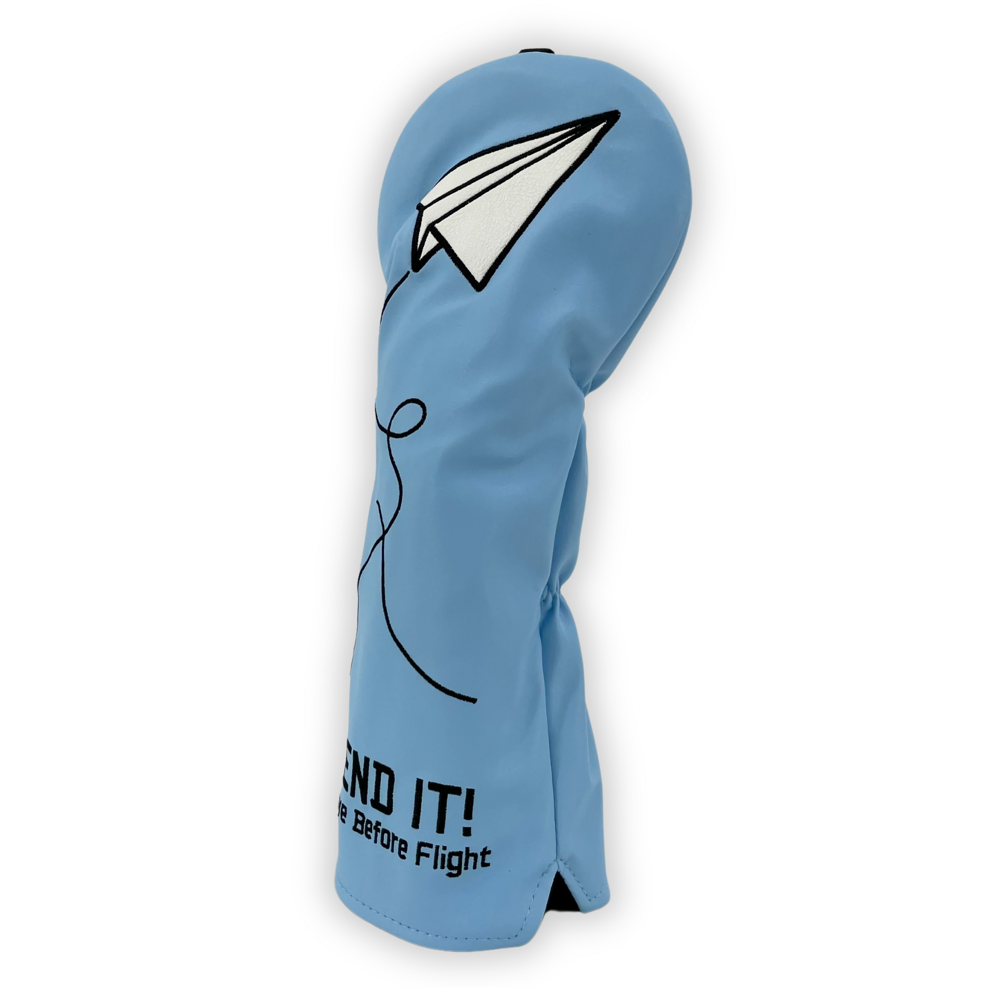 Unik och inspirerande design – Det stilrena motivet med ett pappersflygplan och texten "SEND IT! Remove Before Flight" symboliserar mod, precision och en offensiv golfstil. Perfekt för spelare som gillar att slå långt och satsa fullt ut på varje slag.