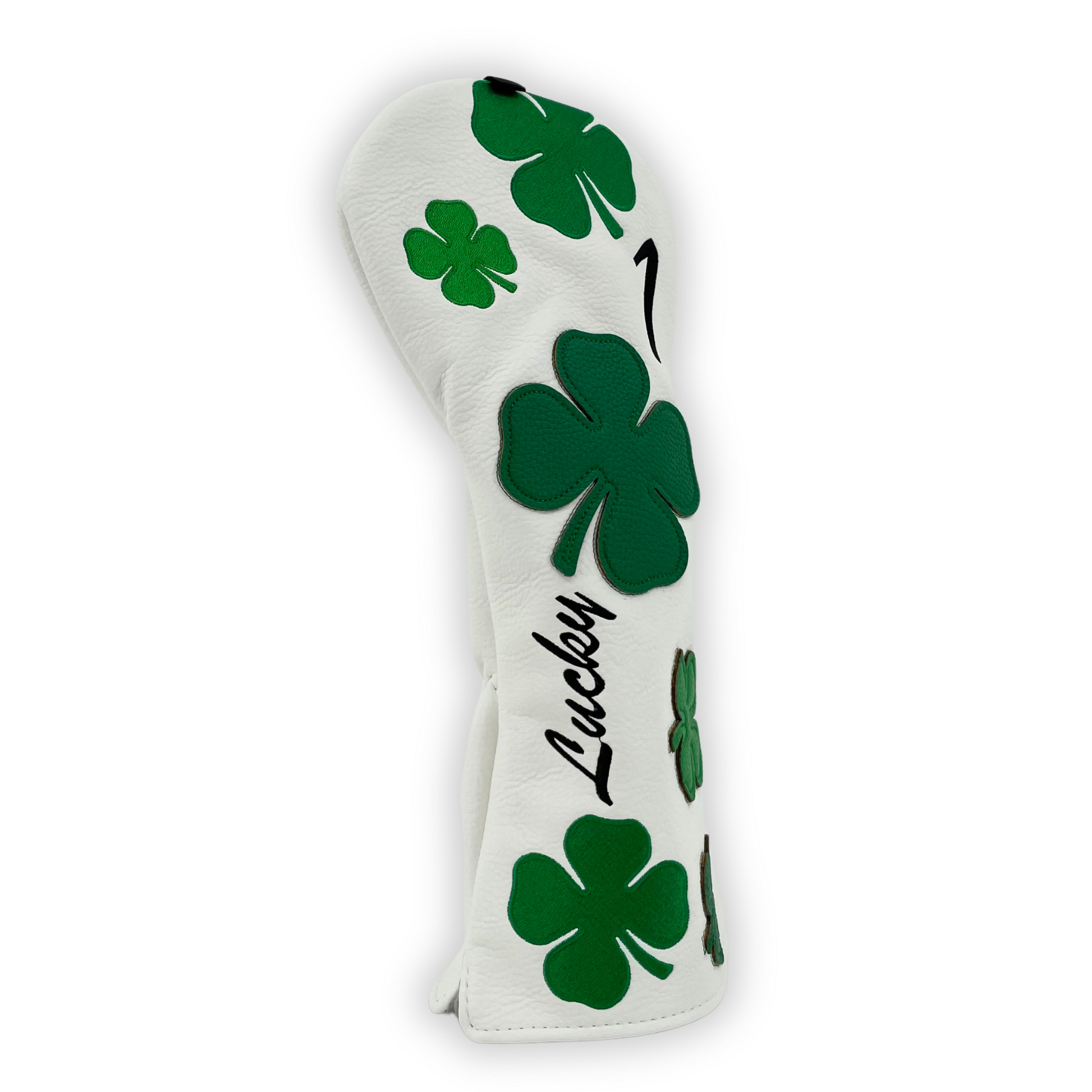 Ta med dig lite extra tur till golfbanan med denna stilrena och symboliska golfheadcover! Oavsett om du tror på fyrklövrar, hästskor eller bara vill ha en extra dos tur med varje sving, är detta den perfekta accessoaren för din driver.