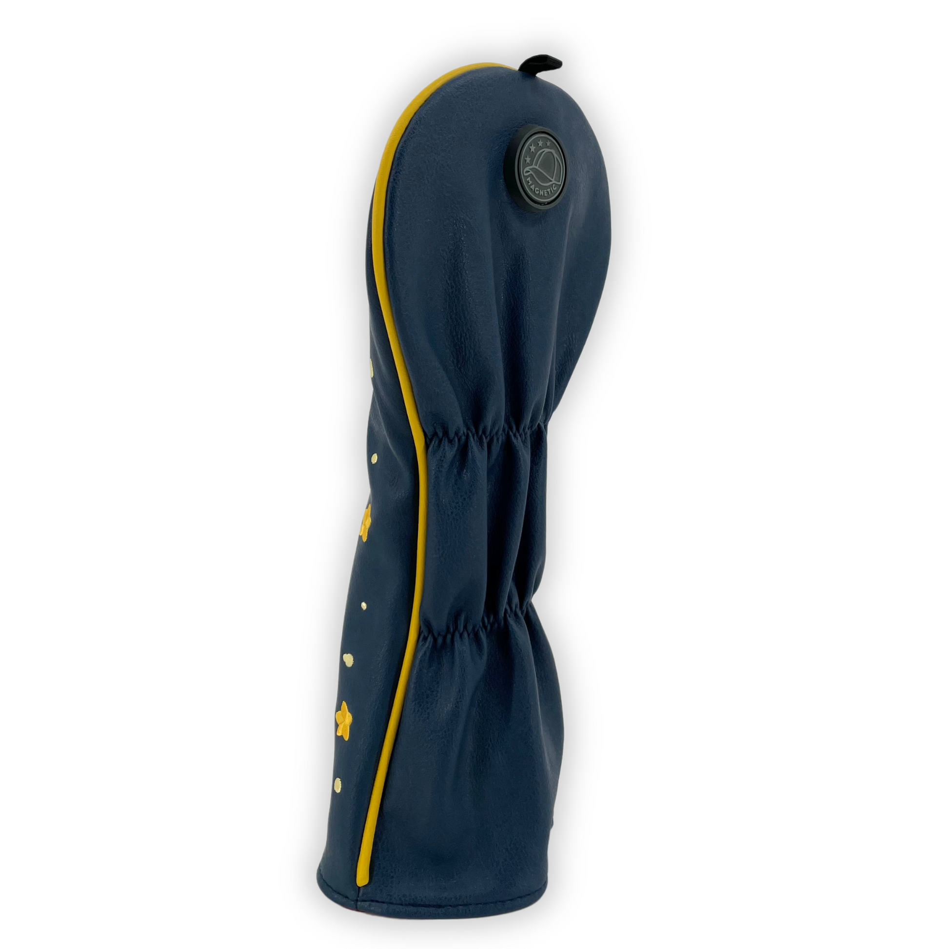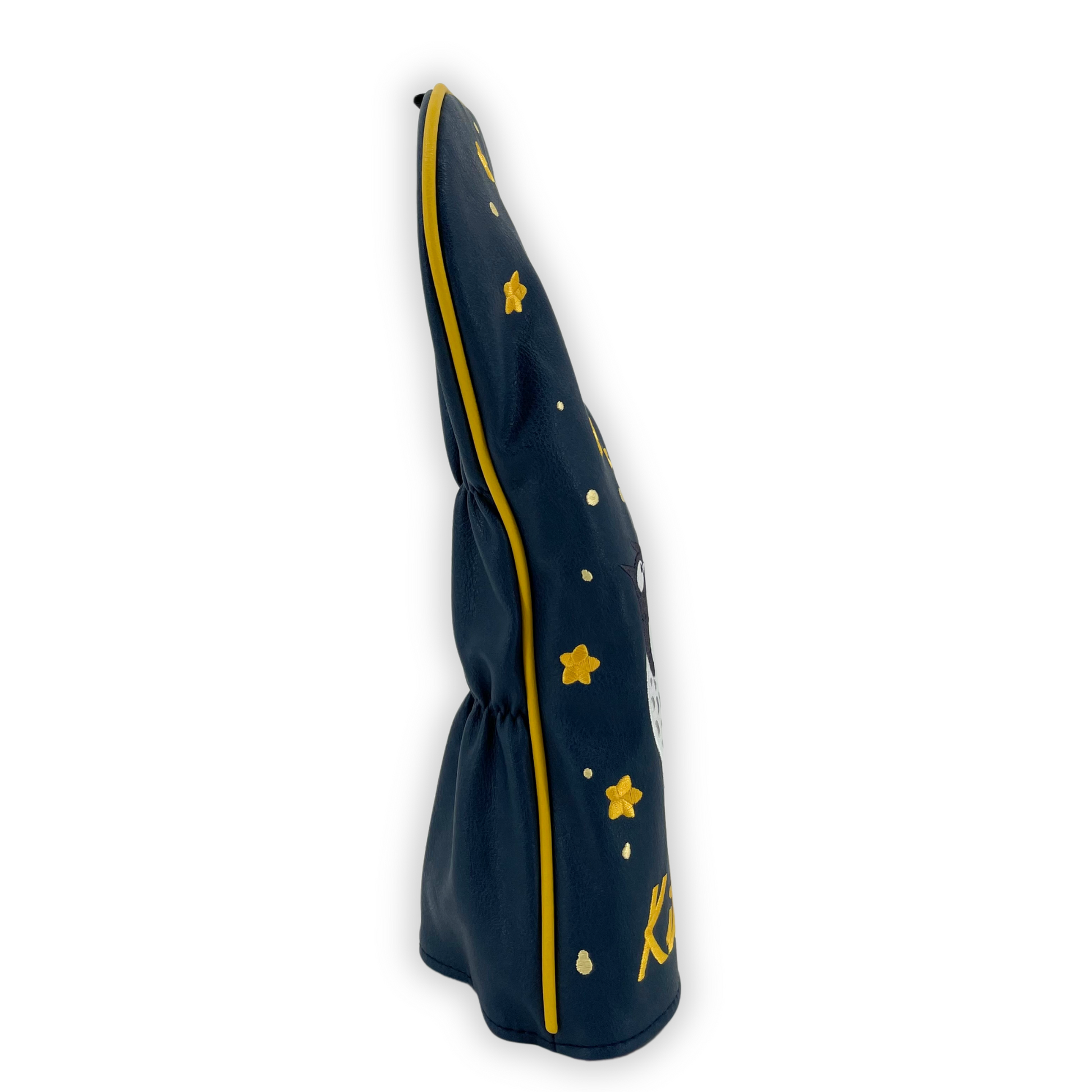 Låt din golfbag sticka ut med denna unika headcover där en äventyrlig katt flyger på en golfboll mot månen! Perfekt för golfaren som älskar en lekfull design och drömmer om att slå sina drives långt ut i galaxen.